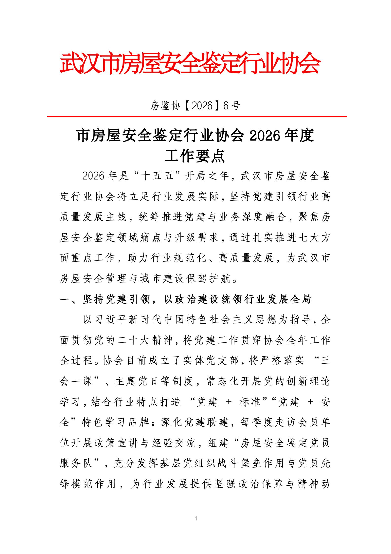 房鉴协【2026】6号——市房屋安全鉴定行业协会2026年度工作要点